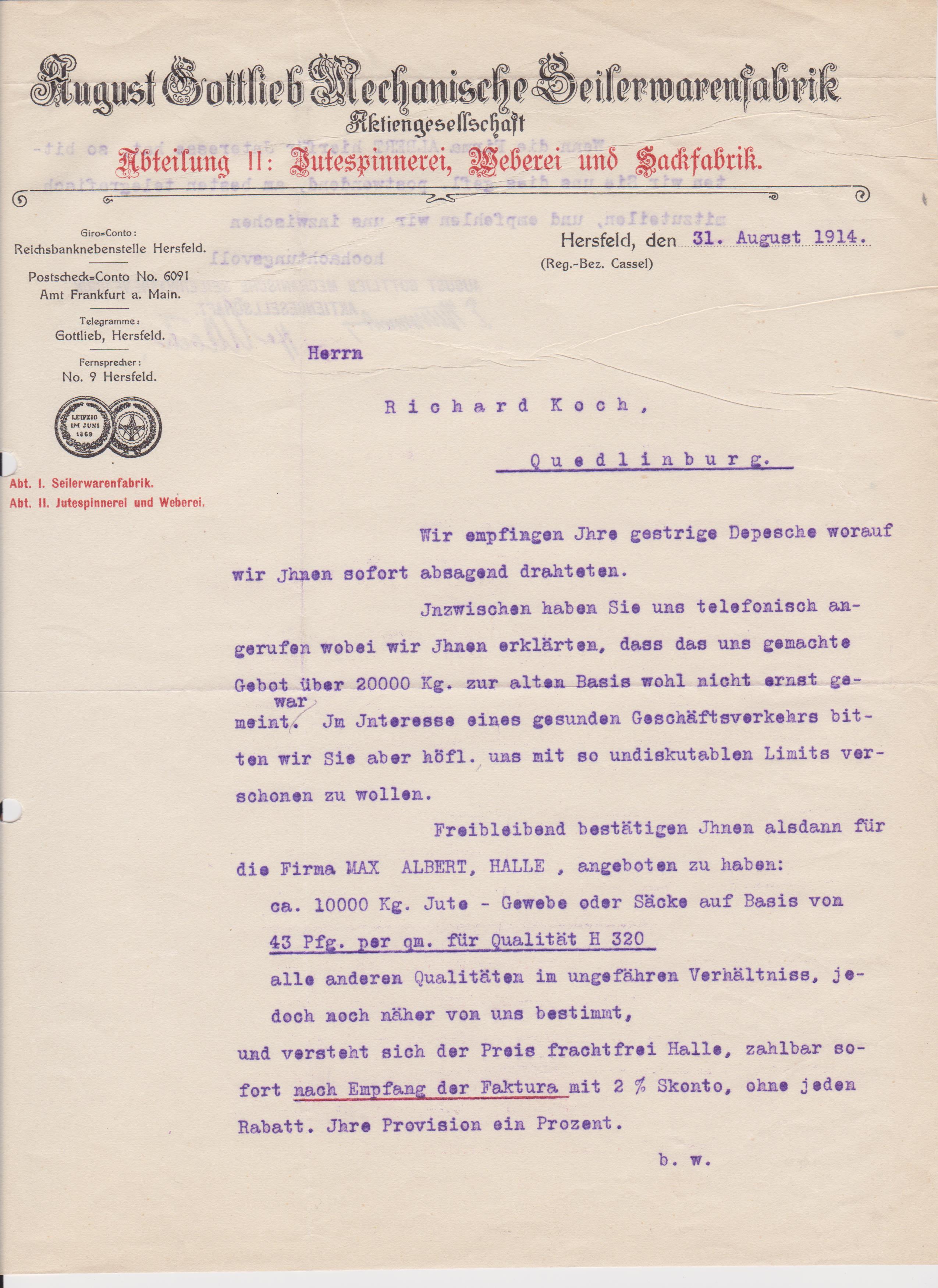 Aktien=Gesellschaft August Gottlieb, Jutespinnerei, Weberei und