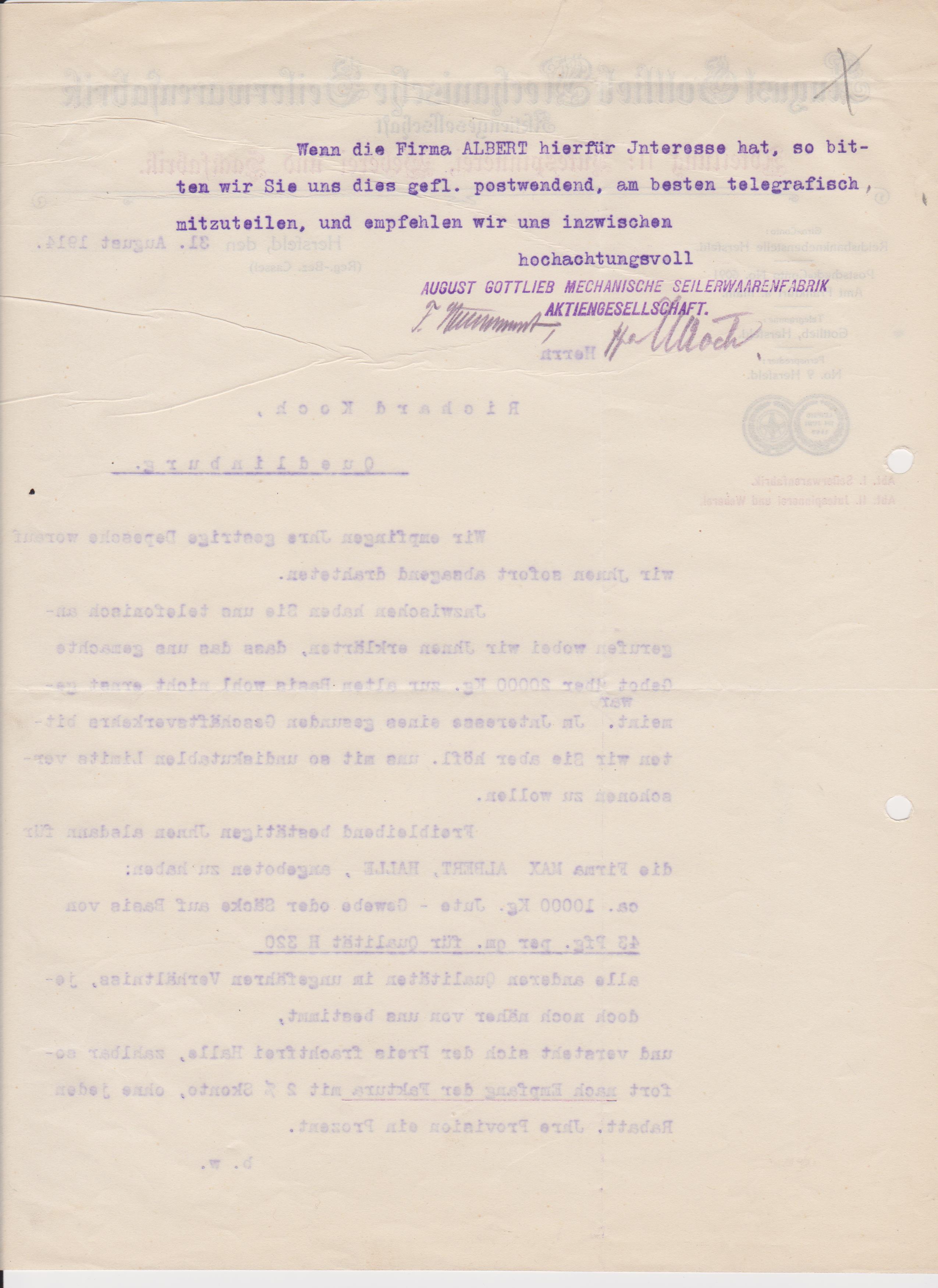 Schrift, die von der Aktiengesellschaft August Gottlieb zu