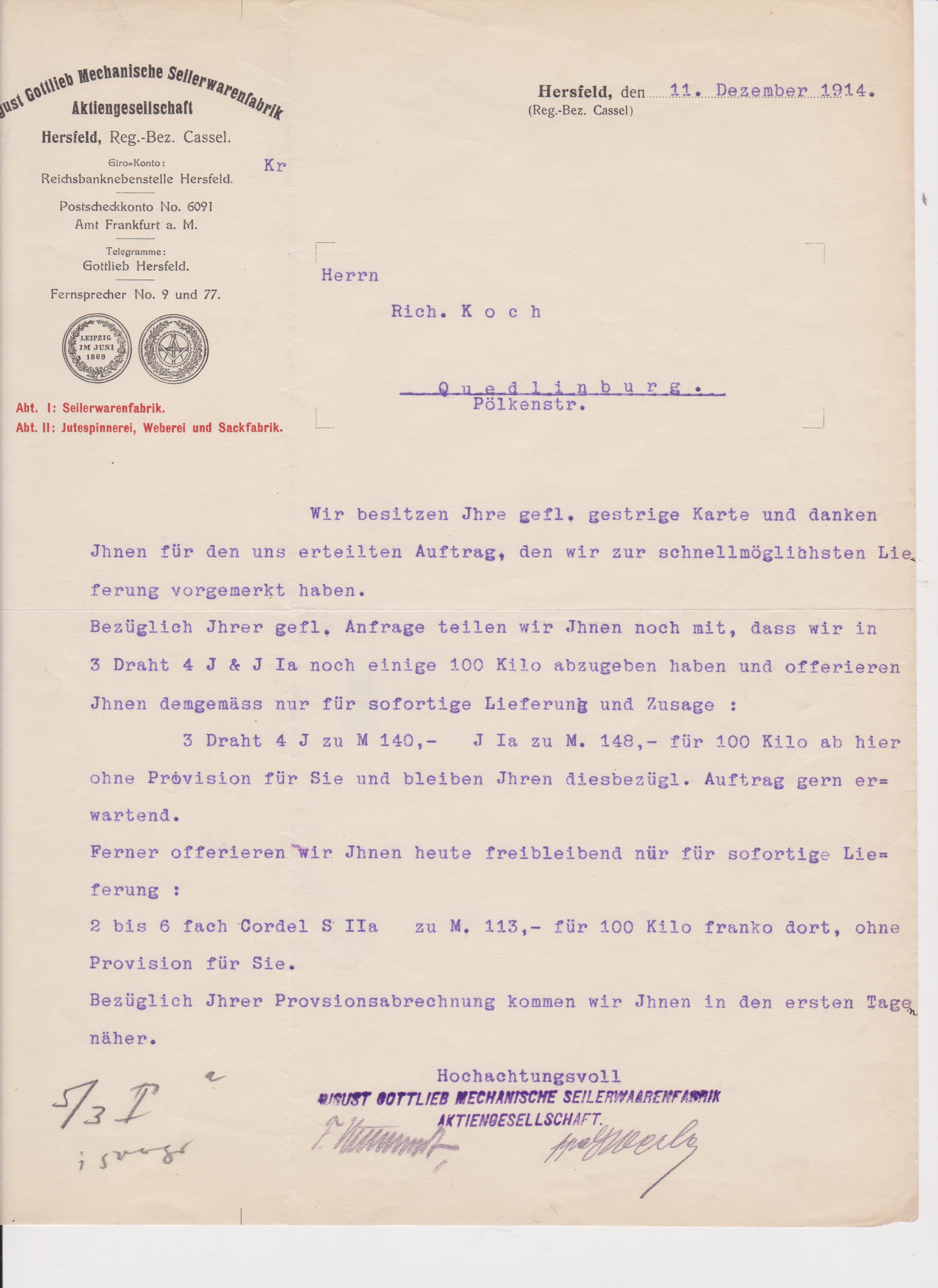 Seilerwarenfabrik zu Bad Hersfeld, Hoehlsche Buchdruckerei, Inh.